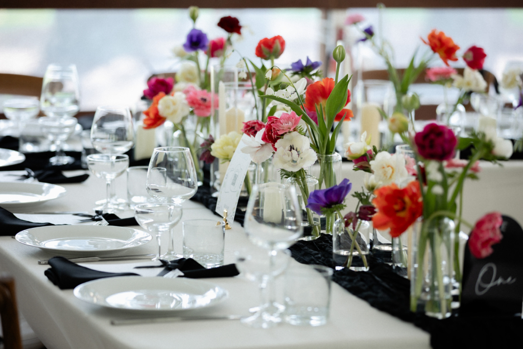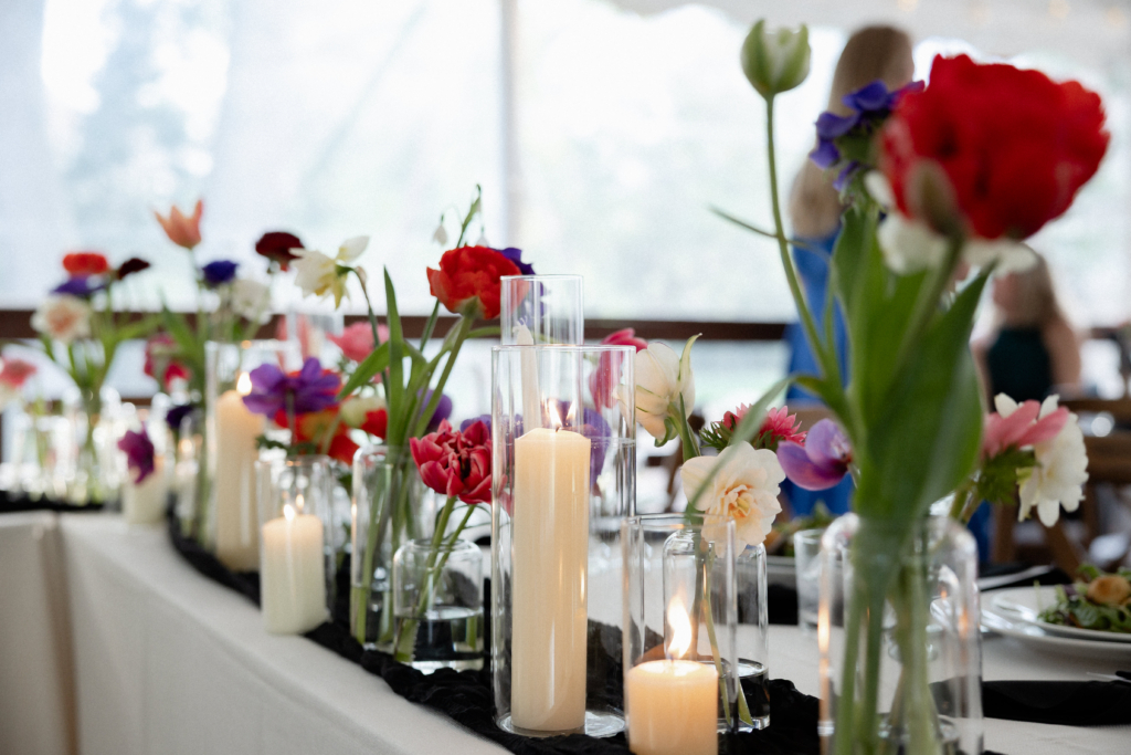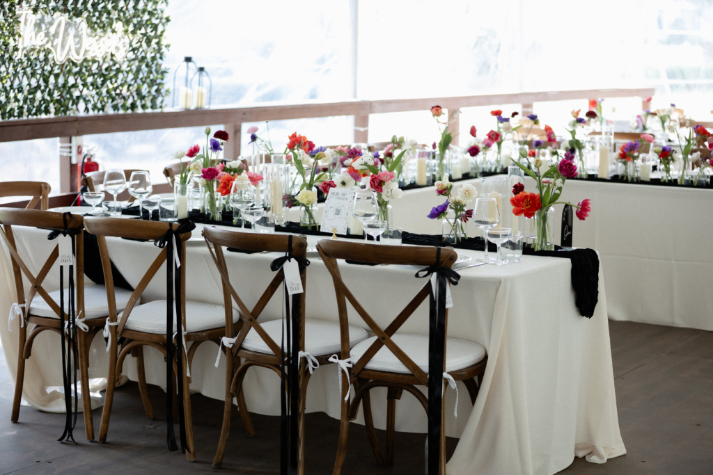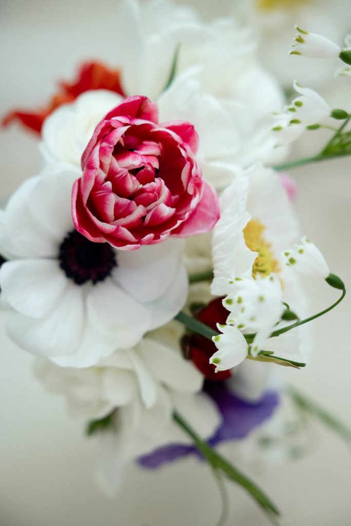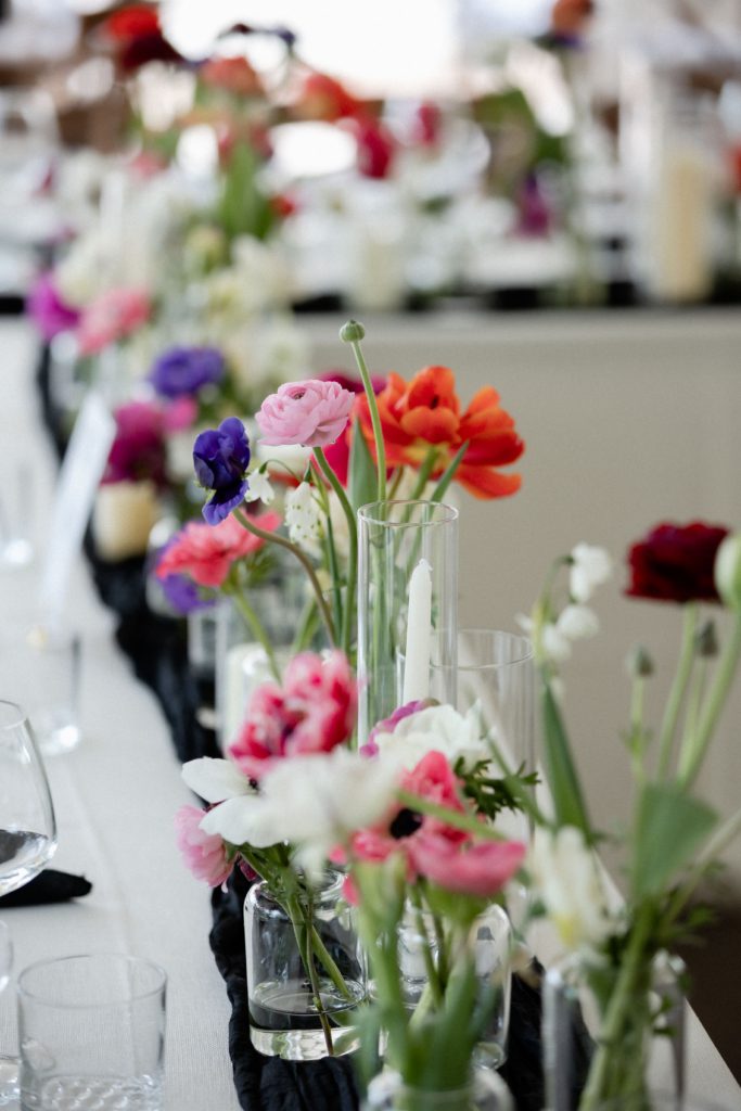 When you meet with a couple, as a florist, and they tell you that everything in the wedding is black and white your heart kinda drops. When they finish the statement and say, except for the florals, we get really excited. These spring blooms were the perfect compliment to the classy backdrop. Just goes to show you how flowers can really impact the feel of a space.